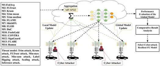An Empirical Analysis of Secure Federated Learning for Autonomous Vehicle ApplicationsFederated Learning lends itself as a promising paradigm for enabling distributed learning in autonomous vehicle applications, ensuring data privacy while enhancing predictive model performance through collaborative training on edge client vehicles. However, it remains vulnerable to various categories of cyber-attacks, necessitating more robust security measures to effectively mitigate potential threats. Poisoning and inference attacks are commonly initiated within the federated learning environment to compromise system security. Secure aggregation can limit the disclosure of sensitive information from both outsider and insider attackers. This study conducts an empirical analysis on the transportation image dataset (e.g., LISA traffic light) using various secure aggregation techniques and multiparty computation in the presence of diverse cyber-attacks. Multiparty computation serves as a state-of-the-art security mechanism, providing privacy-preserving aggregation of local model updates from autonomous vehicles through multiple security protocols. The findings demonstrate how adversaries can mislead autonomous vehicle models, causing traffic light misclassification and potential hazards. This study explores the resilience of different secure federated learning aggregation and multiparty computation methods in safeguarding autonomous vehicle applications against cyber threats during both training and inference phases.